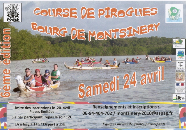 ![]() La 6ème édition de la course de pirogue de l’île de Cayenne aura lieu le samedi 24 avril 2010 à Montsinéry.La course se déroulera devant le débarcadère au centre de Montsinéry comme l’an dernier. Les manches de qualification seront suivies d’une manche de classement et de la grande finale où en découdront les équipages les plus rapides.