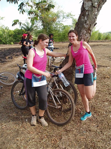 Première épreuve : VTT sur la piste de Saut Maripa avec 4kms chacune à faire en relais! A fond!!!