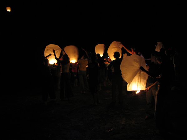 La soirée se terminent avec un lancer de lanternes dans le beau ciel étoilé de Saut Maripa….!! La notre aura quelques soucis de décollage….(en fait elle n’a jamais décollé!!Mais chut! Les Mofayas ne doivent pas savoir ça!!)