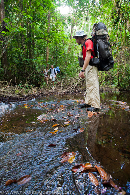 Puis, c’est un layons que nous parcourrons à pieds (malgré les apparences, c’était juste pour deux jours et une nuit…) :