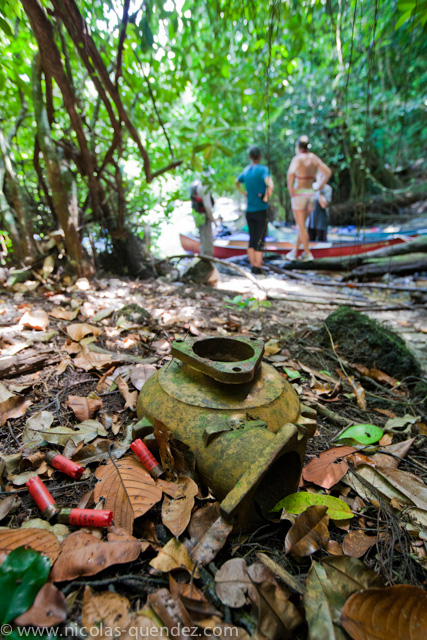 De jour, on aperçoit mieux les traces d’orpaillage et d’activités associées :