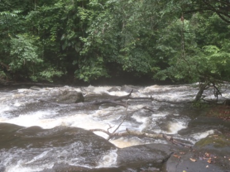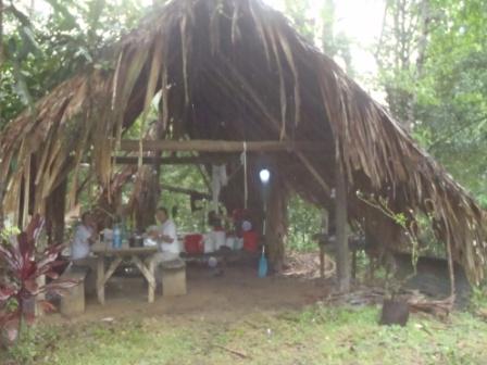 Le lendemain début de la descente. Arrivé à saut Lavilette dans l’après-midi où nous trouvons le carbet …occupé ! Comme on n’est pas du genre à s’imposer, on a cherché plus loin et nous avons trouvé un cinq étoiles libre à saut Magasin :