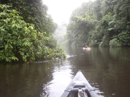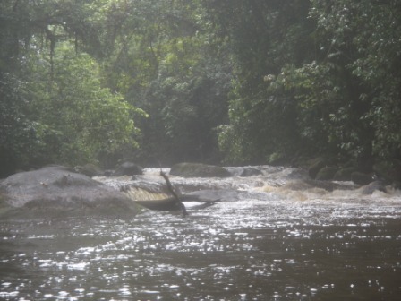 Nous avons ainsi passé cette étape avec succès ! Mais avec un peu de temps aussi ! bref, on a décidé de poursuivre le chemin vers notre objectif. Les efforts furent constants et nous n’avons pas hésité à braver tous les dangers, avec en particulier une attaque de sensitive en plein virage provoquant déstabilisation de l’embarcation et blessures terrrrrrrrrrribles ! :