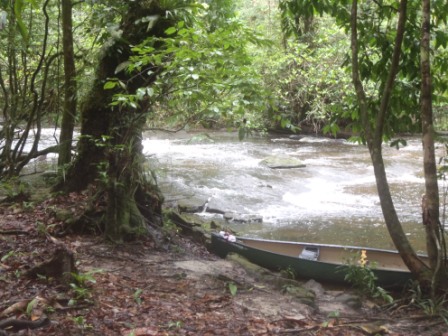 Le lendemain le piroguier nous dépose au niveau de la Manaré, un (tout petit) peu au dessus de saut Lavilette. Toute une demi-journée de pagaie et nous atteignons avec plaisir le bas de saut trou cochon 1 où nous attend un carbet tip-top :