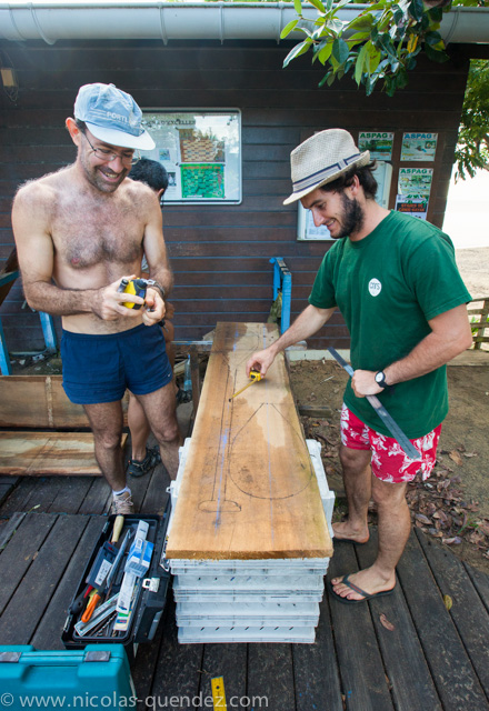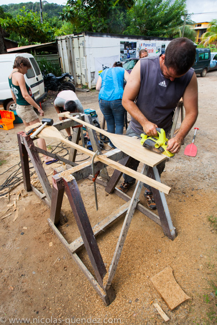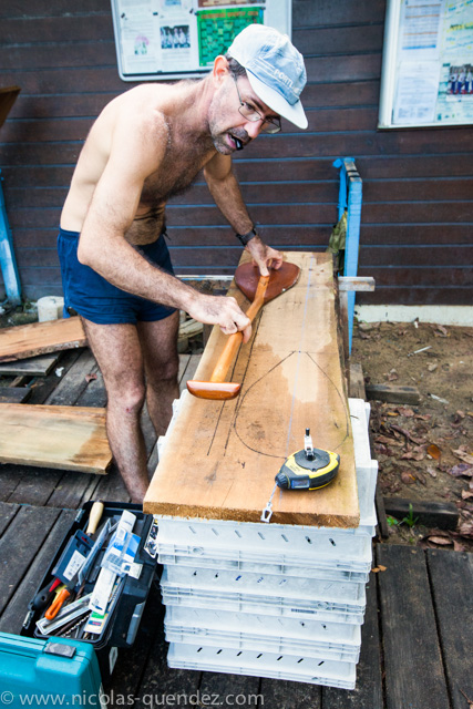 Tracé de la forme de pagaie souhaitée sur les planches apportées pour l’occasion :