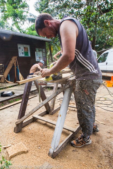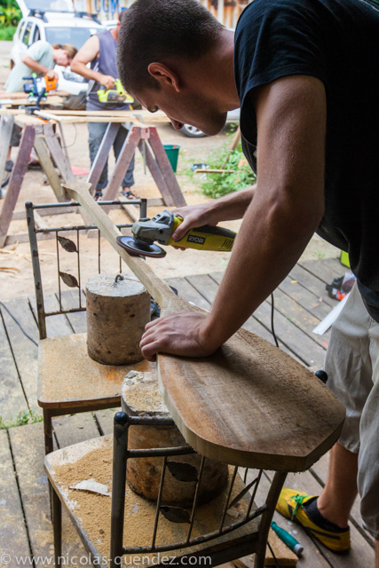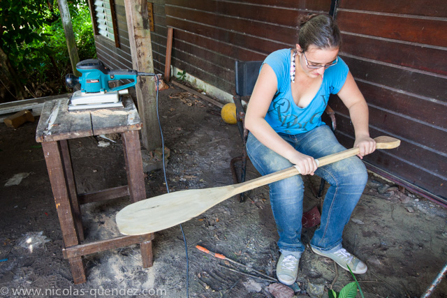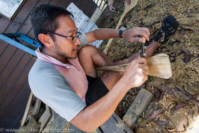 Mathias a animé un atelier de fabrication de pagaies traditionnelles.