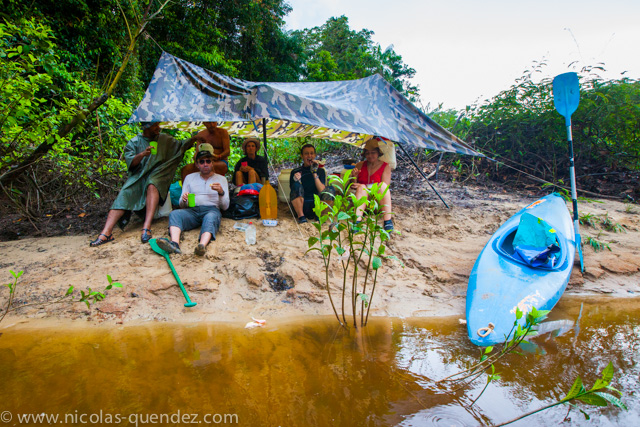 Mais ça se mérite, et avant toute bonne chose, il faut monter son carbet bâche. Si vous ne savez pas comment faire, Didier se charge de vous montrer :